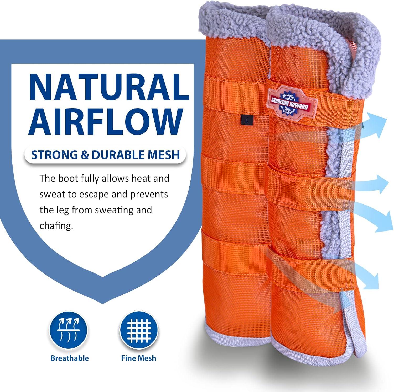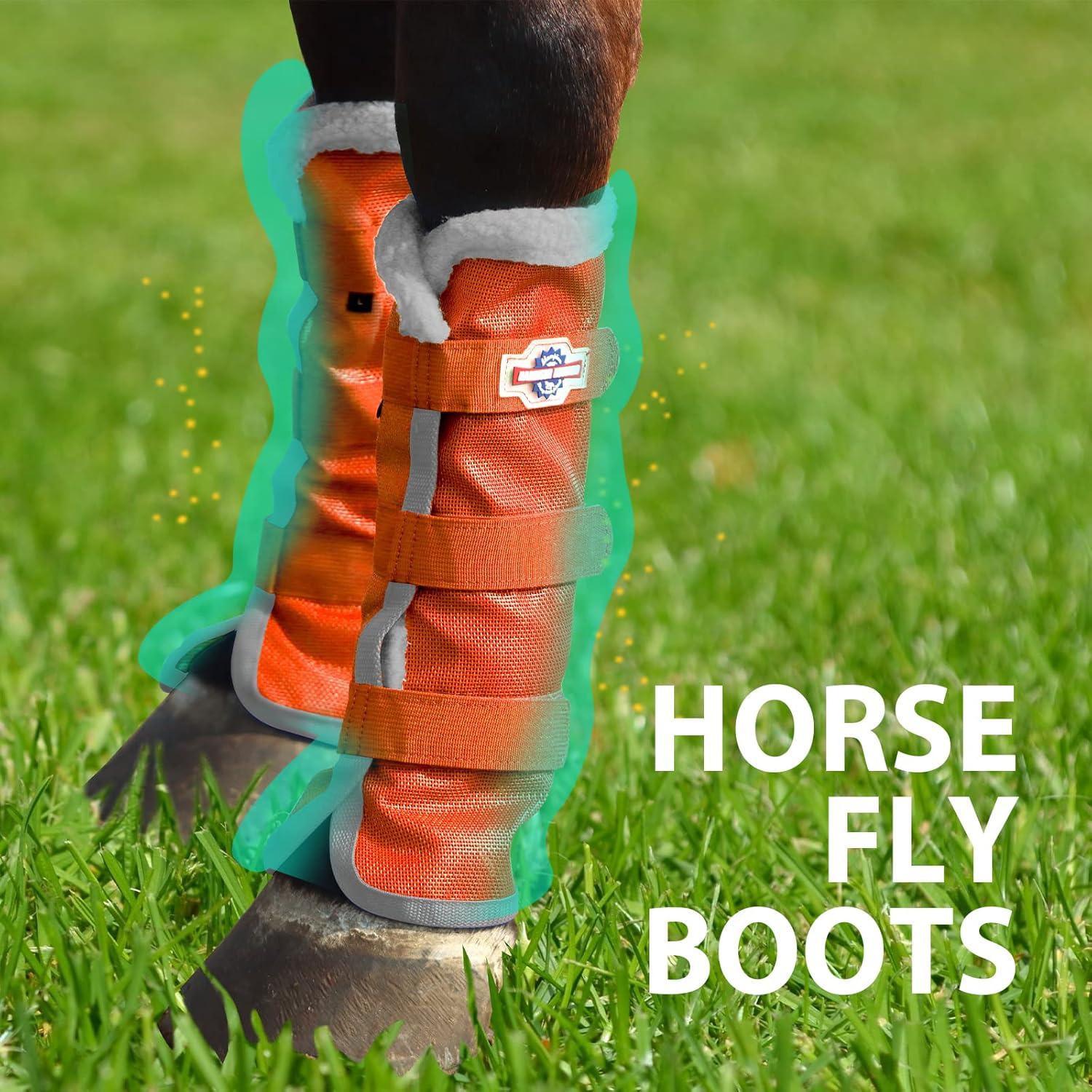 Harrison Howard Horse Fly Boots with Fleece Trim Durable Breathable Cool Mesh Adjustable Closure(Vibrant Orange)