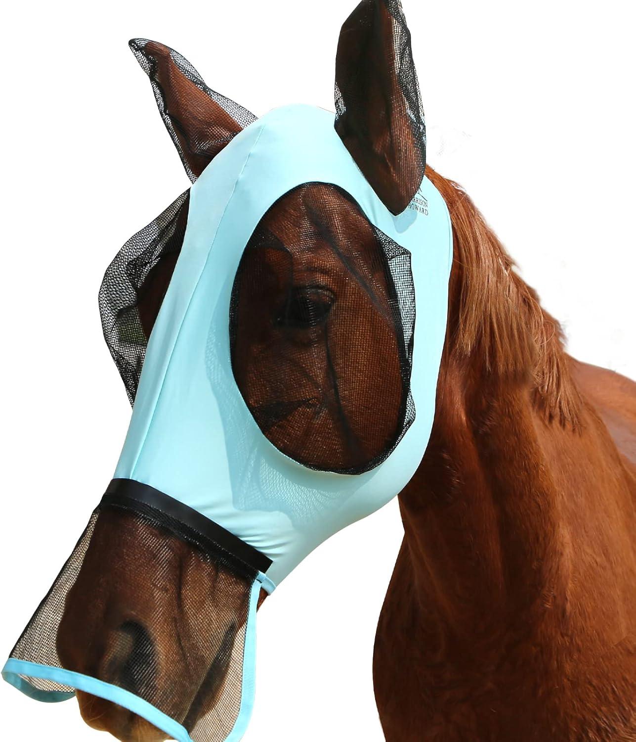 Harrison Howard Horse Fly Mask with Detachable Nose Cover-Ice Blue (L; Full Size)