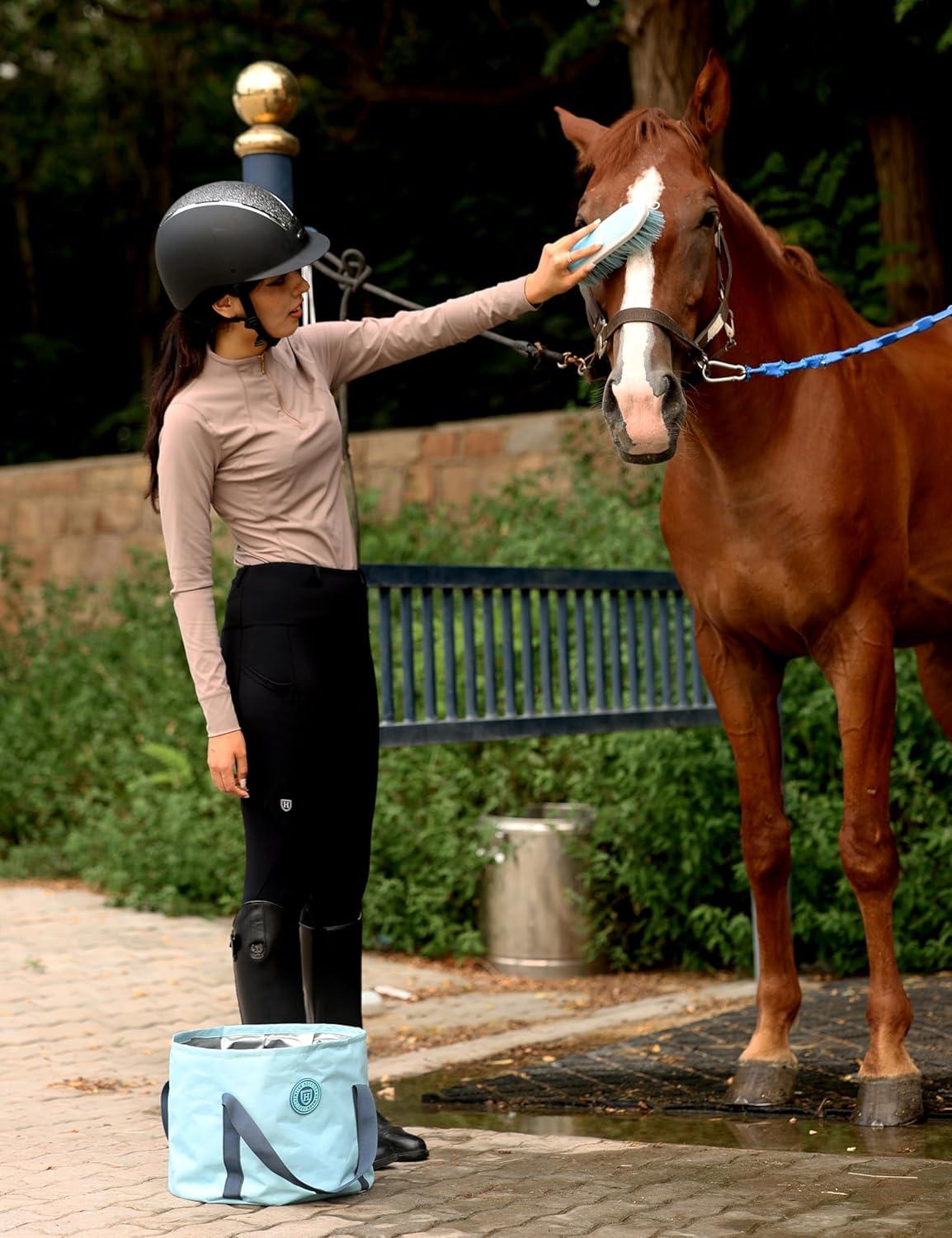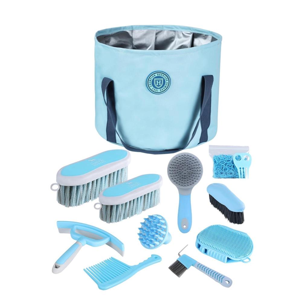 Harrison Howard Horse Grooming Kit 9-Piece Equine Care Series Horse Brush Sets with Organizer Tote Bag Deep Blue(Soft Blue(horse bag))