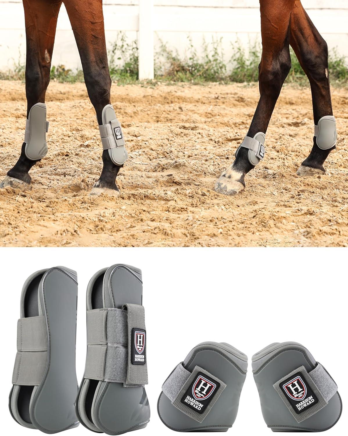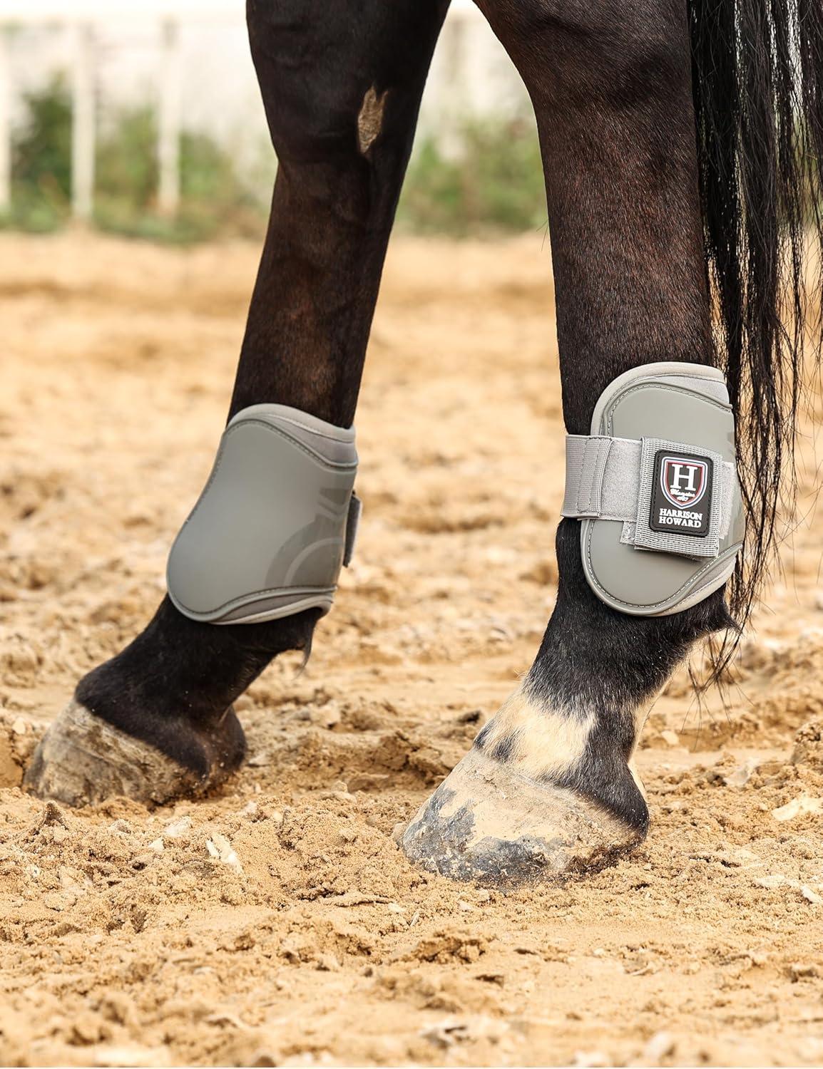 Harrison Howard Horse Tendon Boots Open Front/Fetlock Boot for Horse Protective Boots for Jumping, Trail Riding Set of 4(Grey)
