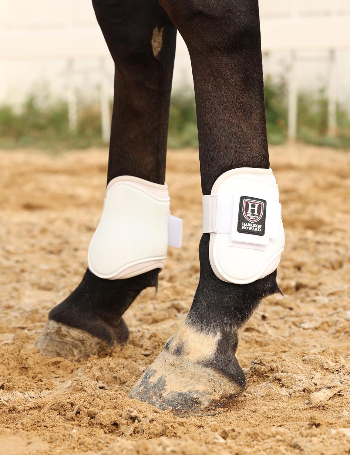 Harrison Howard Horse Tendon Boots Open Front/Fetlock Boot for Horse Protective Boots for Jumping, Trail Riding Set of 4(White)