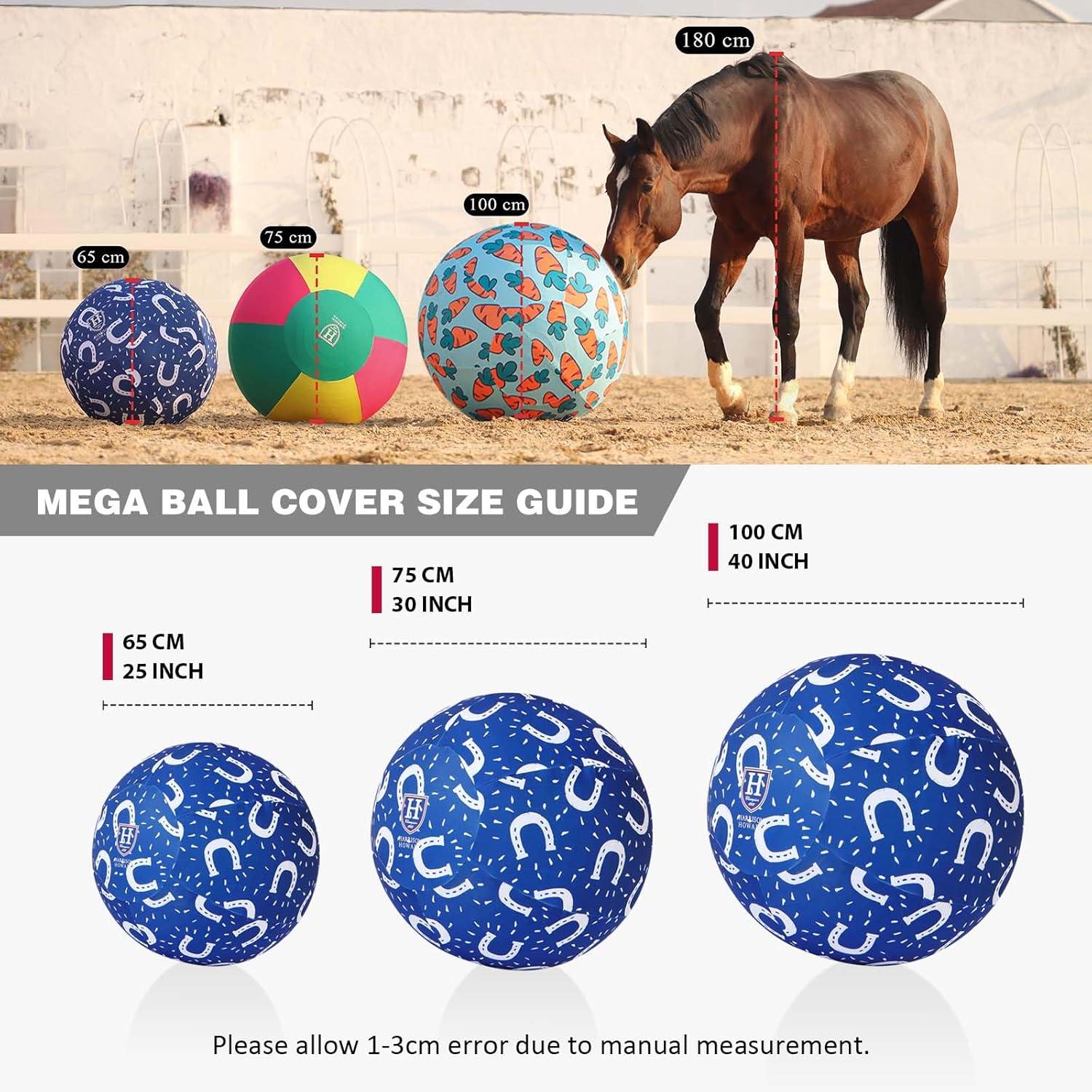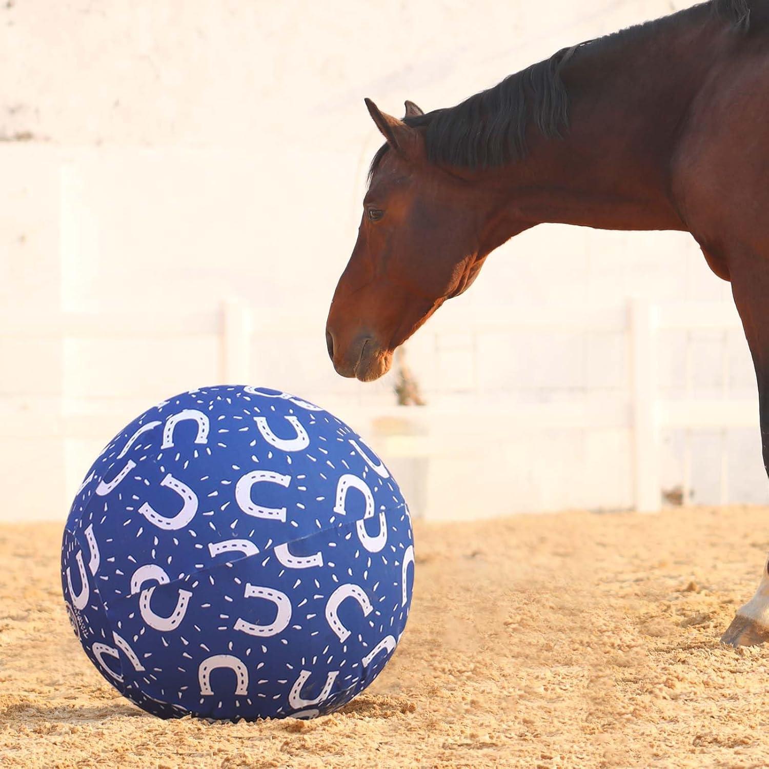Harrison Howard Howdy Bally Horse Playball Covers Mega Ball Protective Cover for Equine Use Exclusive Fun Patterns Meadow Fiesta 40″(Horseshoe Print)