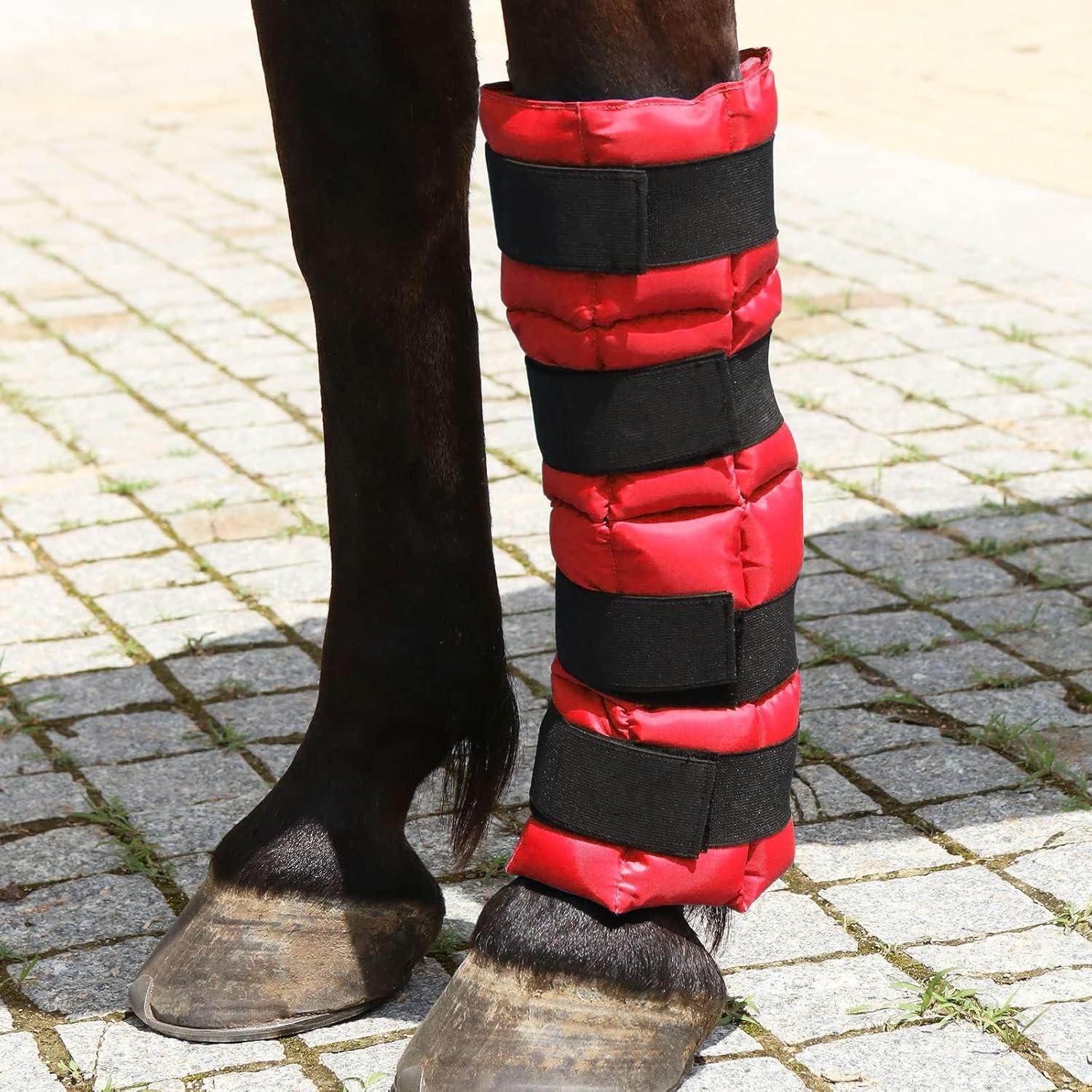 Harrison Howard Ice Boot for Horse Cool Gel Pack Leg Wrap for Treating Full Leg, Knee, Hock Injuries Reusable Ice Cooling Therapy, Universal Size(Red)
