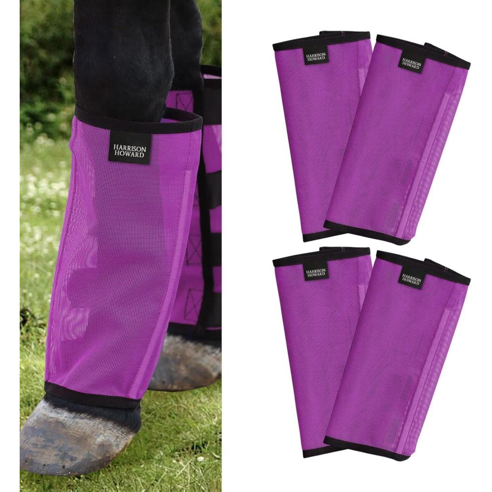 Harrison Howard Loose-Fitting Horse Fly Leggings Breathable, Tear-Resistant Fine Mesh Leg Guards Stay-on Comfortable Fly Boots (Set of 4) Blue Pony(Purple)