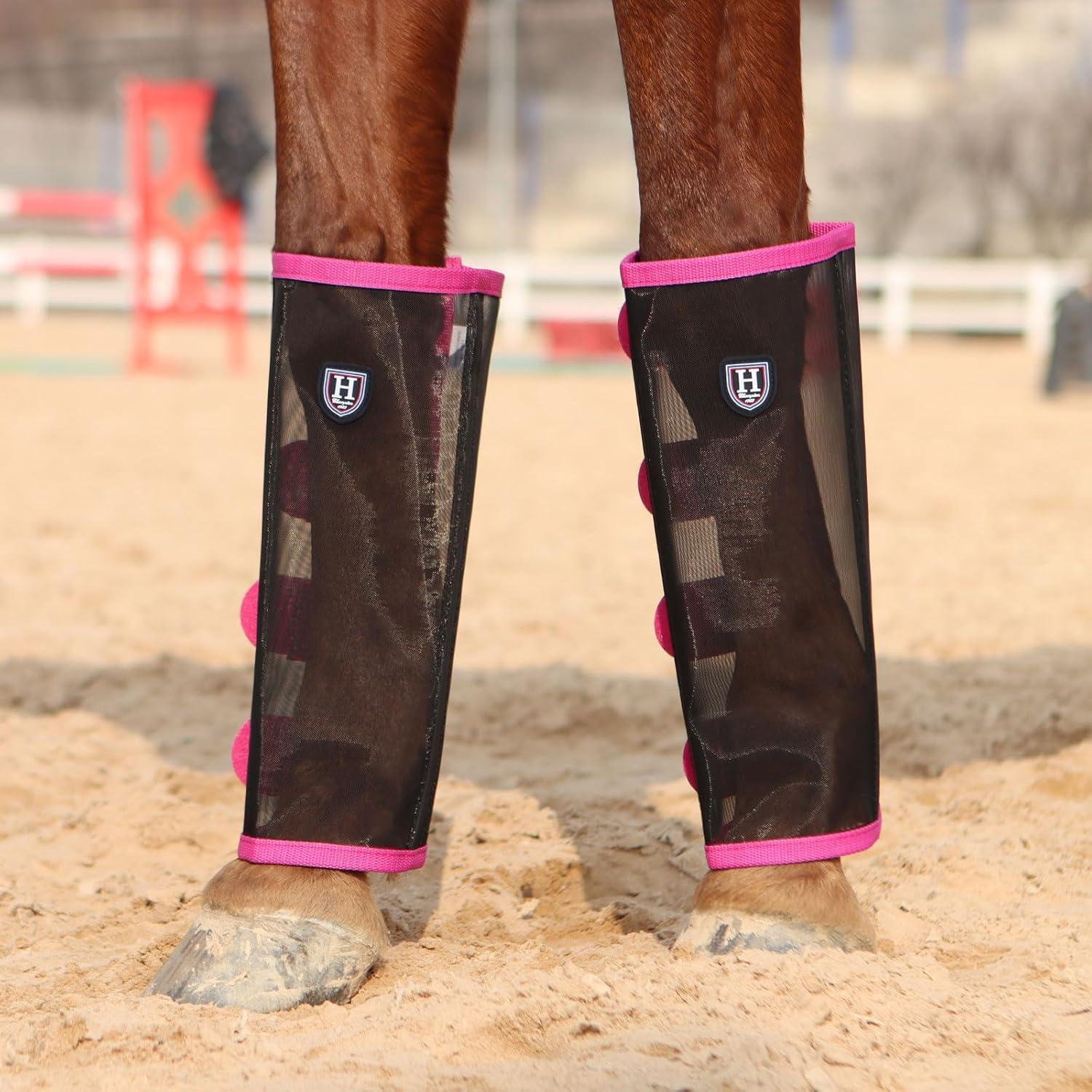Harrison Howard Loose-Fitting Horse Fly Leggings Breathable, Tear-Resistant Fine Mesh Leg Guards Stay-on Comfortable Fly Boots (Set of 4)(Magenta)