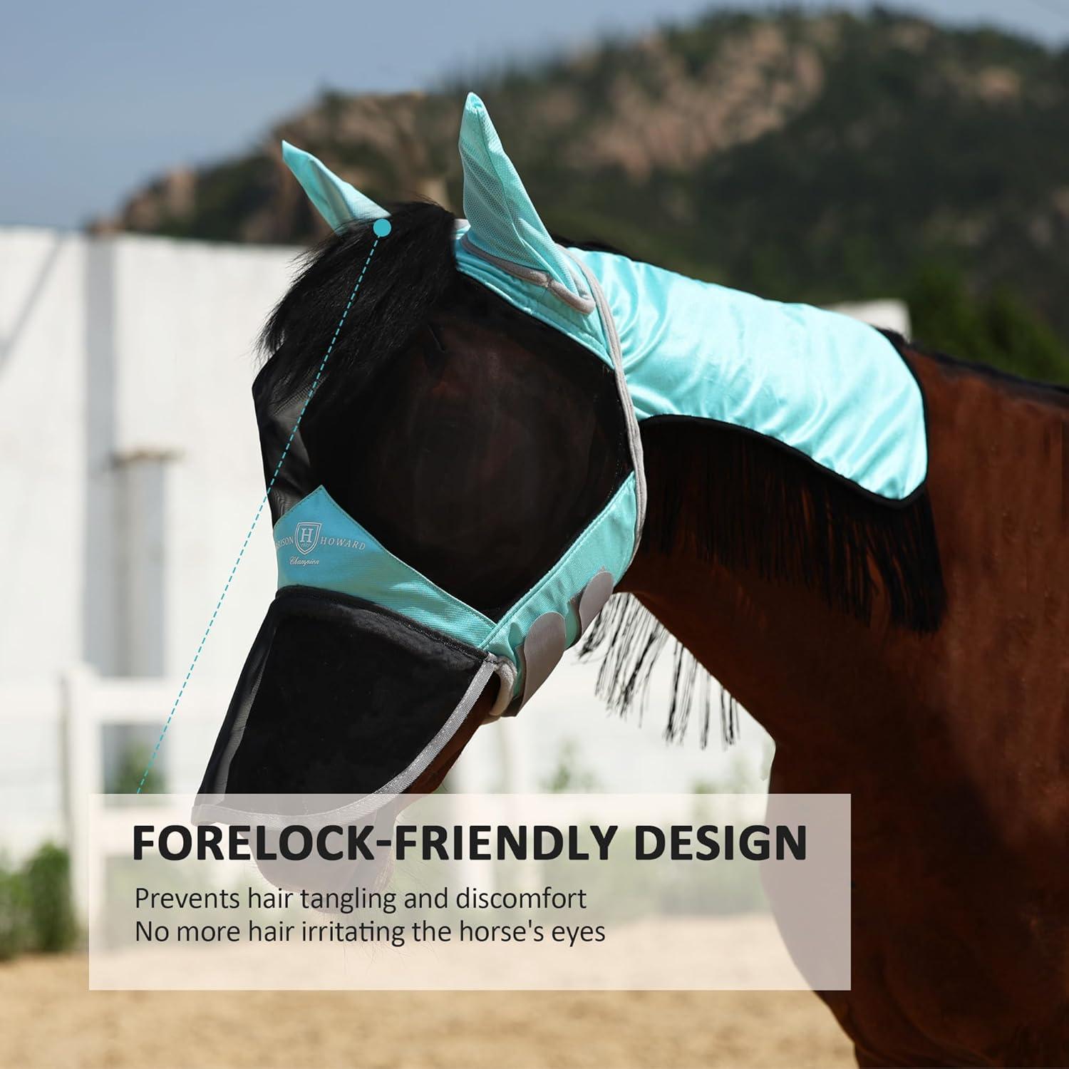 Ergonomic and Nonrestrictive Design: Designed with your horse's comfort in mind, the ergonomic shape of this mask ensures it fits perfectly, offering both comfort and protection. The mask's design conforms to the horse's head, staying securely in place without causing restriction.