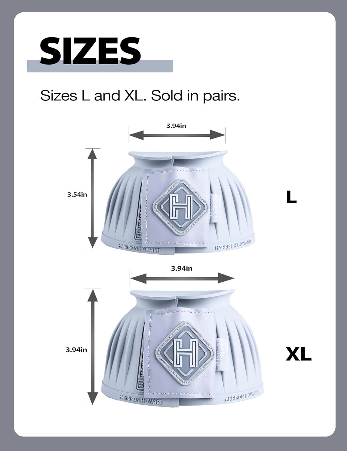 Harrison Howard Rubber Bell Boots Leather Touch-Close Overreach Boots Hoof Protection for Horses Sold in Pairs Light Grey L(Light Grey)