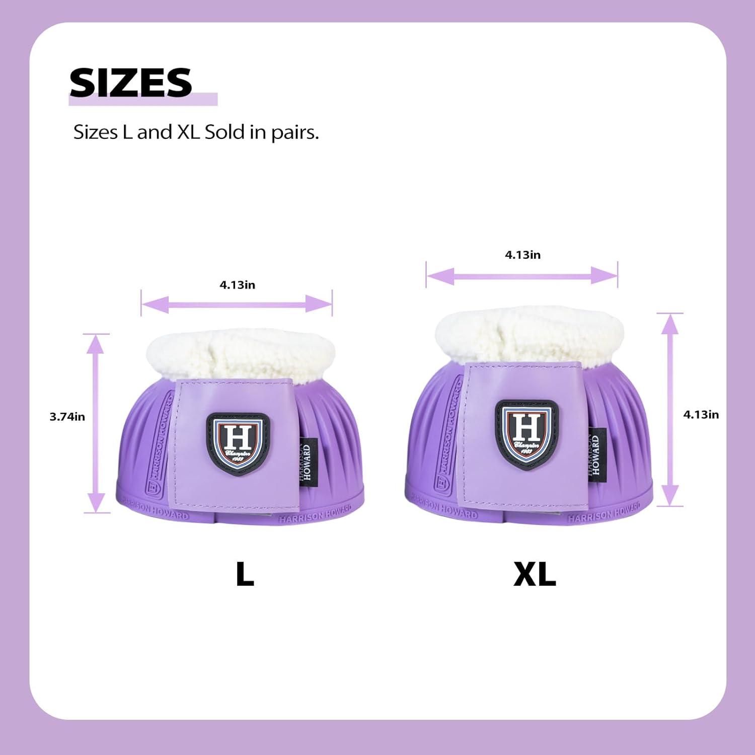 Harrison Howard Rubber Pull-on Bell Boots with Fleece Lining and Extra-Large Leather Touch-Close Tape Hoof Overreach Protection for Horses Sold in Pairs Light Grey L(Violet)