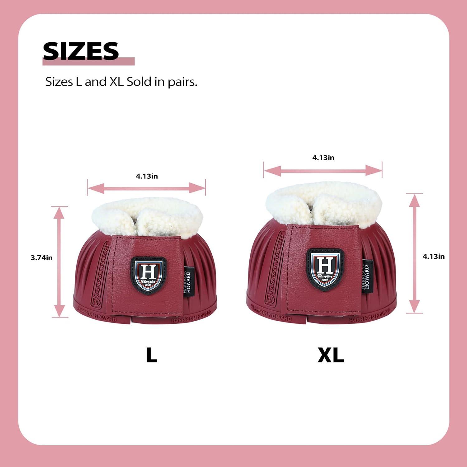 Harrison Howard Rubber Pull-on Bell Boots with Fleece Lining and Extra-Large Leather Touch-Close Tape Hoof Overreach Protection for Horses Sold in Pairs Light Grey L(Wine Red)