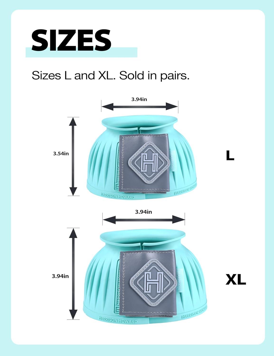 Harrison Howard Rubber Pull-on Bell Boots with Fleece Lining and Touch-Close Tapes Hoof Overreach Protection for Horses(Turquoise)