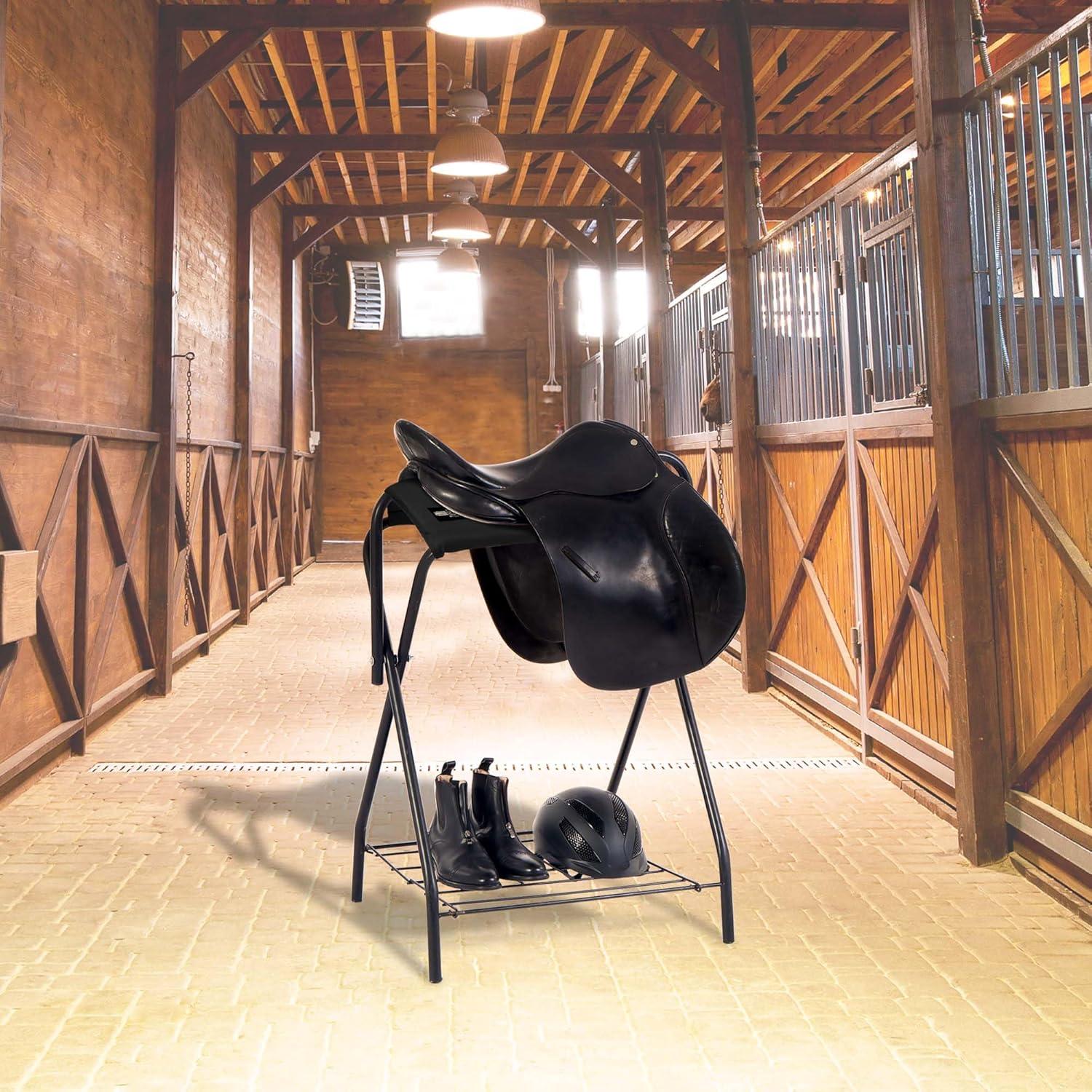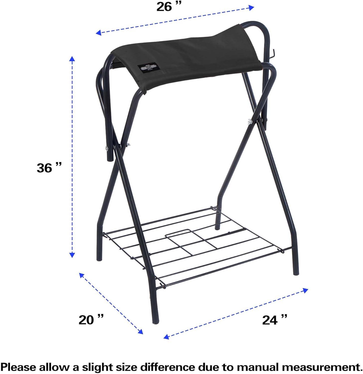 Harrison Howard Saddle Stand Freestanding Full-Size Portable Floor Horse Saddle Rack with Fabric Adds Protection to Underside of Saddle Prevents Bar Indentations Secure Saddle Saddle Black(Black)