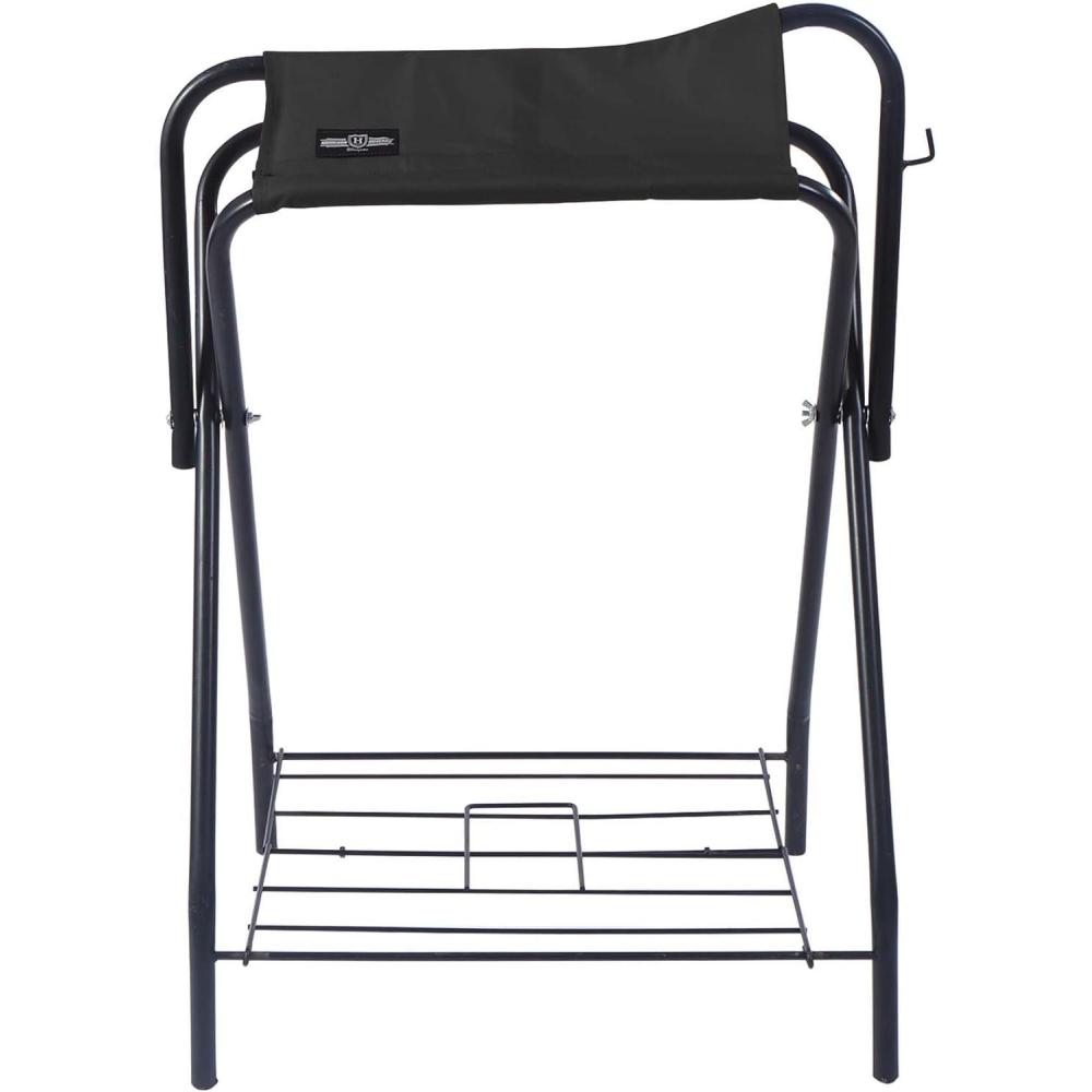 Extra Storage and Accessibility: A foldable metal wire rack at the bottom provides additional space for storing your equestrian essentials. Plus, there's a handy bridle hook on the side for keeping everything you need within easy reach.