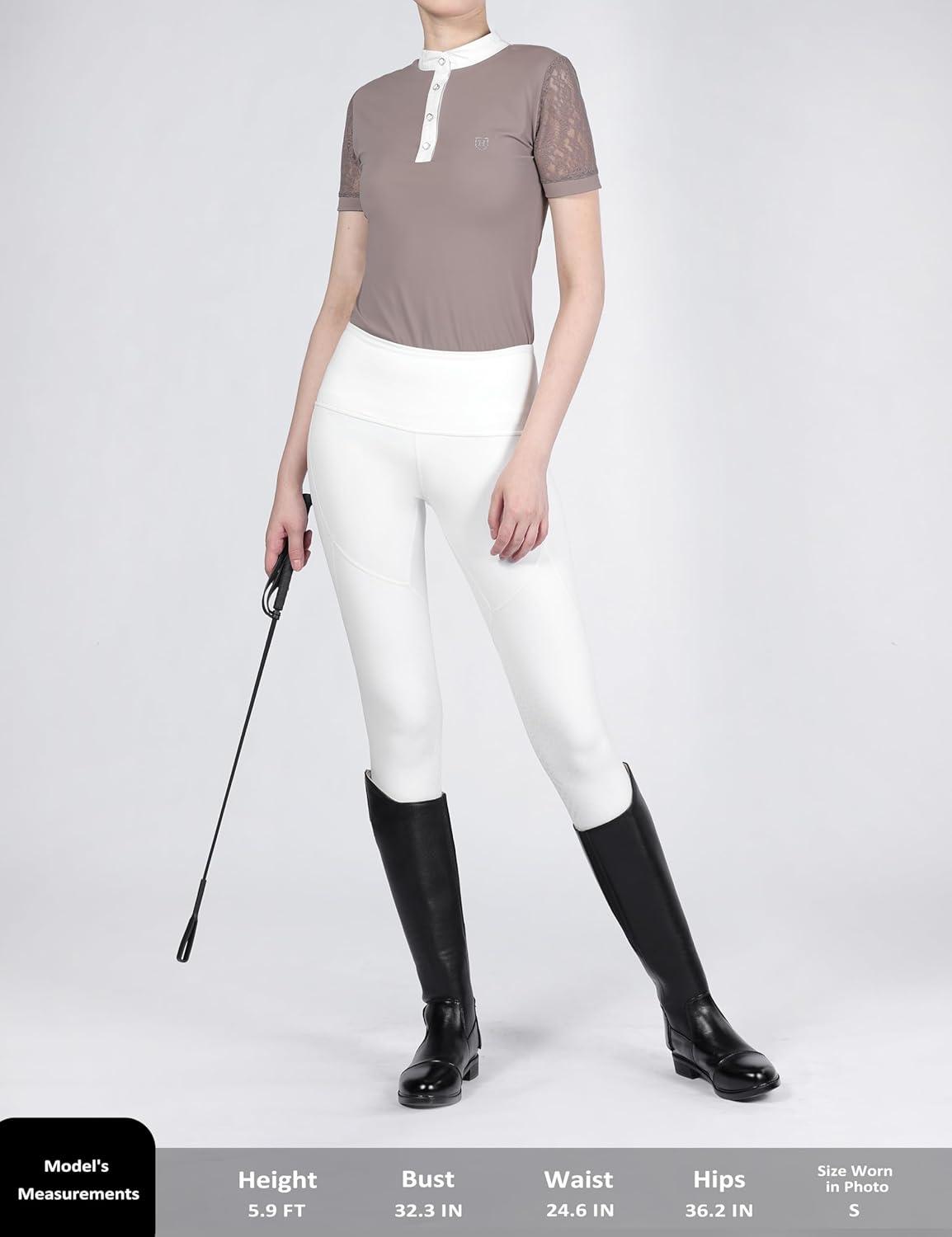 Harrison Howard Short Sleeve Lace Top Show Shirt Breathable with Graceful Back Lace Rider Top(Beige)