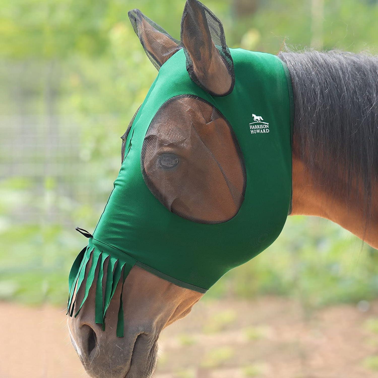 Harrison Howard Superior Comfort Breathable Fly Masks Soft on Skin with Tassels Natural Nose Swatter(Tassel Fringe-Deep Green)