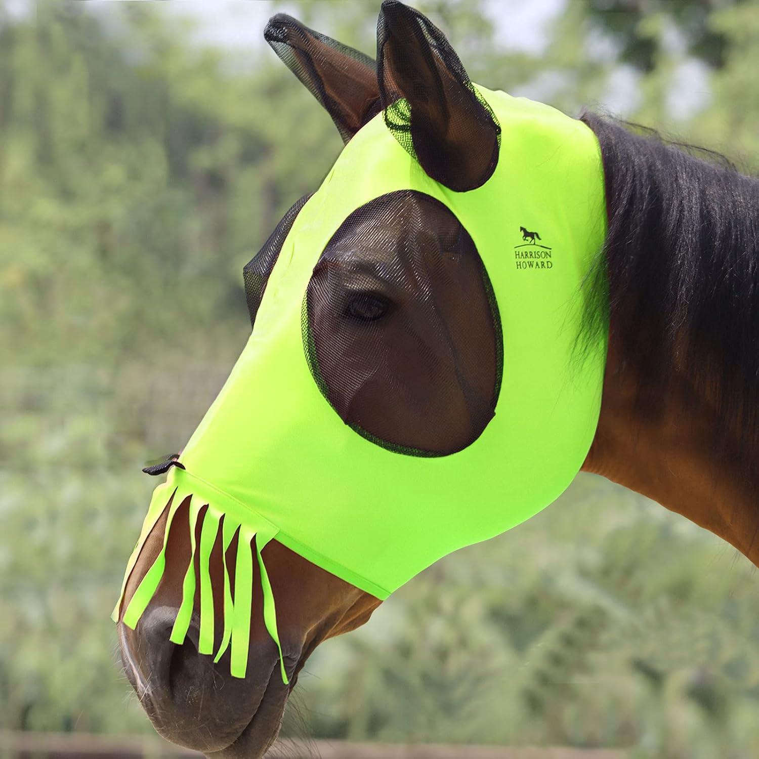 Harrison Howard Superior Comfort Breathable Fly Masks Soft on Skin with Tassels Natural Nose Swatter(Tassel Fringe-Fluro-Lime)