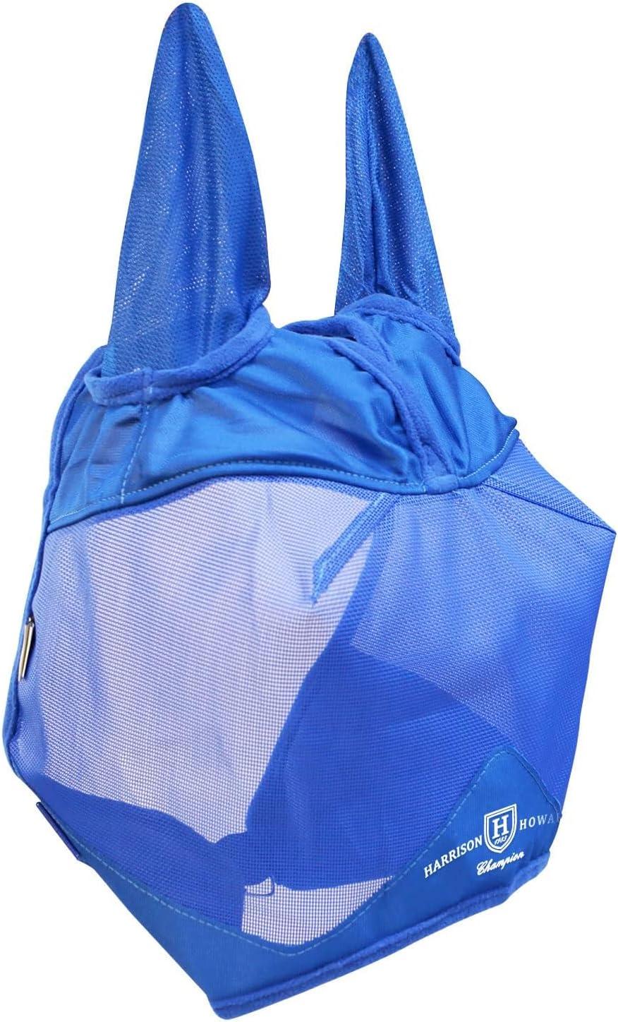Harrison Howard UV-proof Multi-Function Fabrics Thick Fleece Padding Horse Fly Mask Half Face with Ears Mint Horse Large(Signature Blue)
