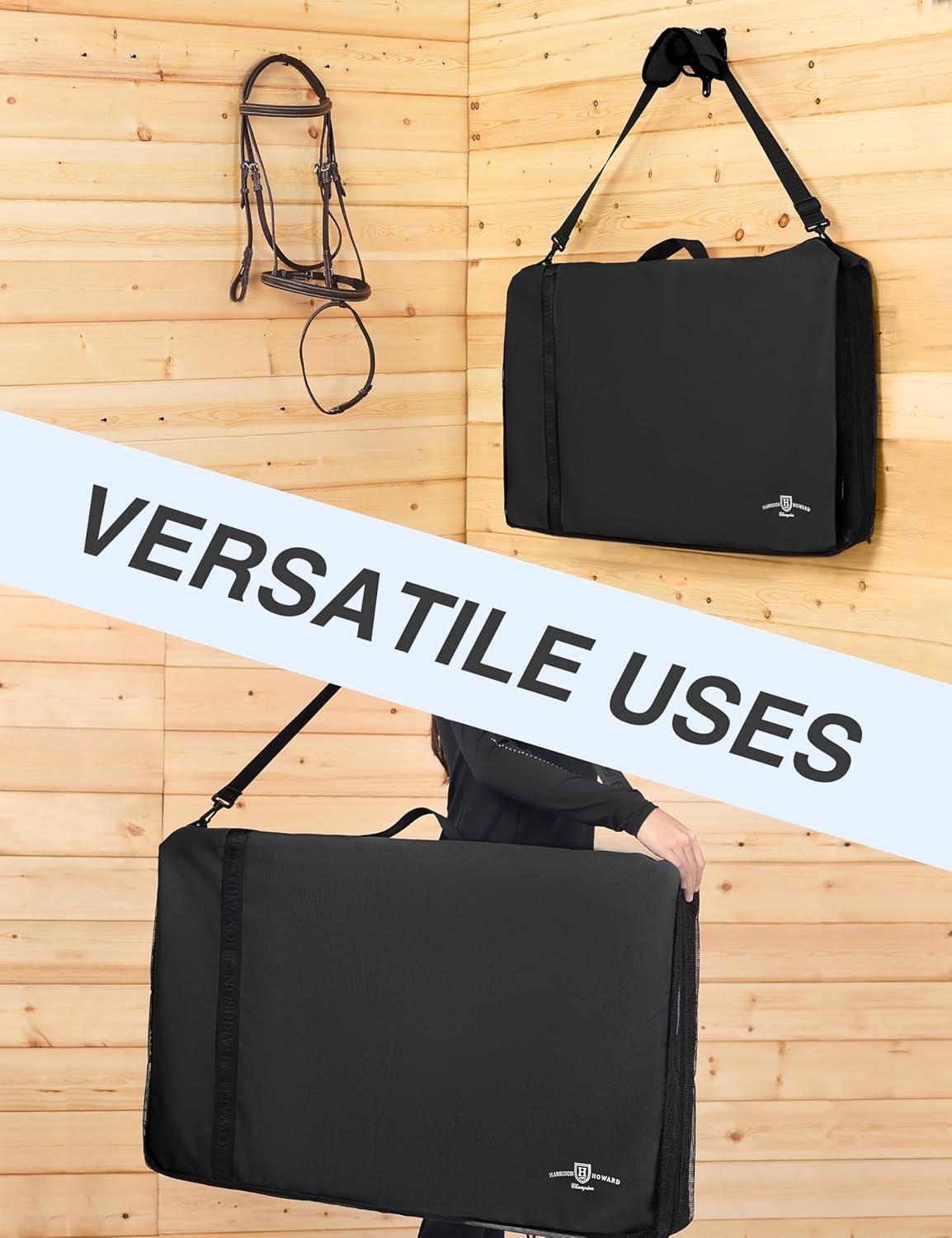 Versatile & Widely Applicable: Suitable for various use cases, whether carrying your gear to equestrian events, storing it in trailers or stables, or using it as a Western saddle pad carrier. This saddle pad bag offers all-around convenience and protection for both English or Western saddle pads.