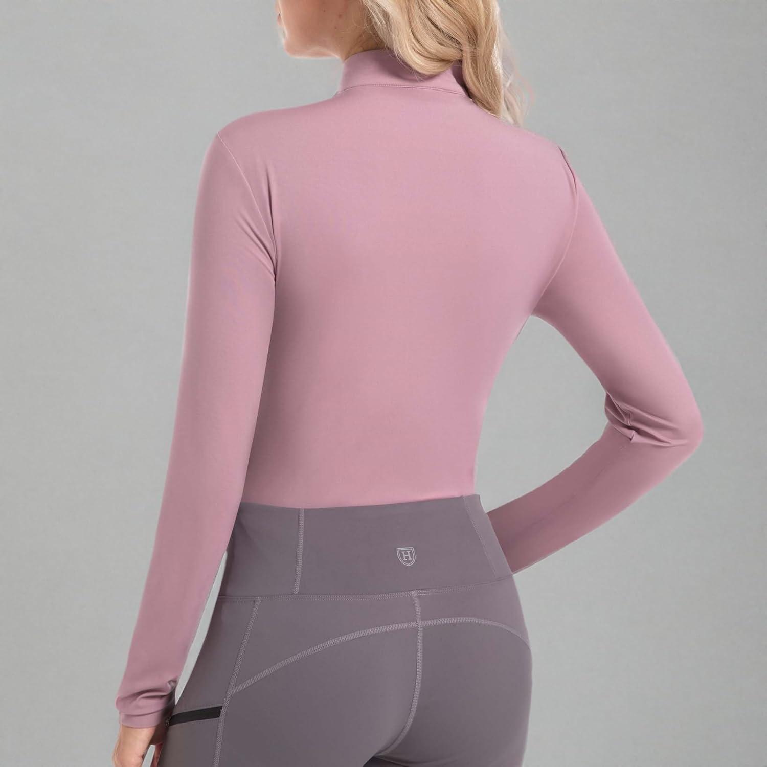 Harrison Howard Women’s Equestrian Sweat Absorption Quick Drying Horse Riding Long Sleeve Shirt 1/4 Zip Base Layer(Plum)