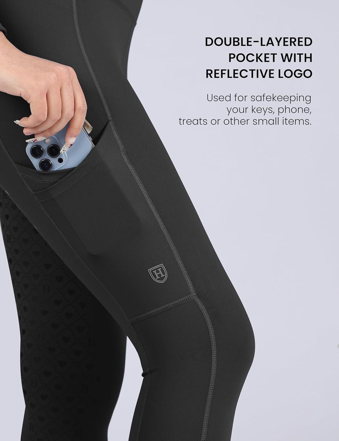 Harrison Howard Women’s Full Seat Riding Tights with Double-Layer Pockets Equestrian Breeches for Women(Black)