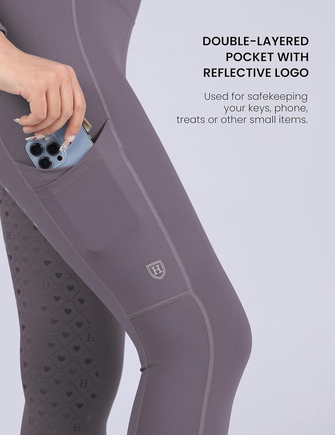 Harrison Howard Women’s Full Seat Riding Tights with Double-Layer Pockets Equestrian Breeches for Women(Grey)