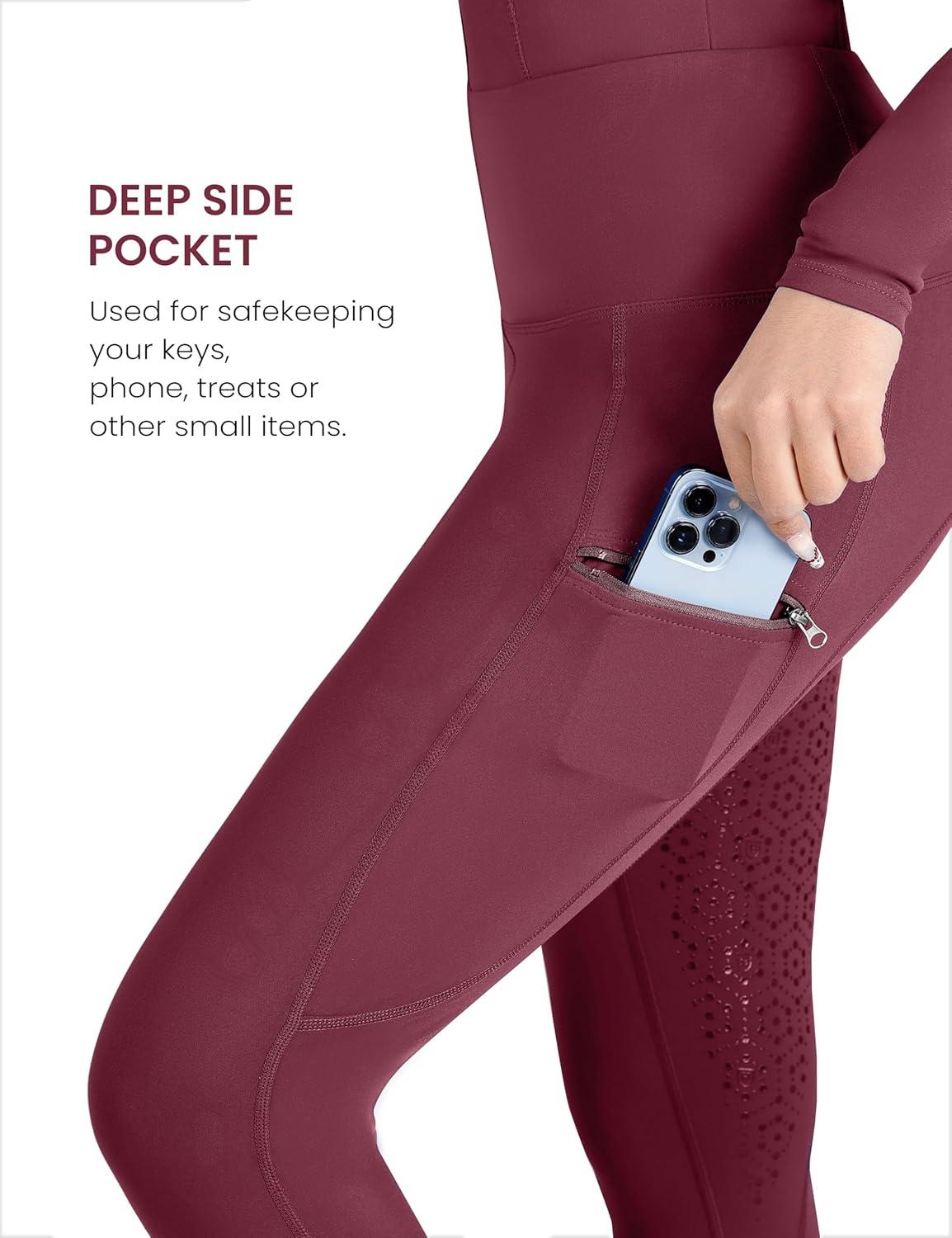 Harrison Howard Women’s Horse Riding Pants with Zipper Pockets Equestrian Breeches Riding Breeches for Women(Burgundy)