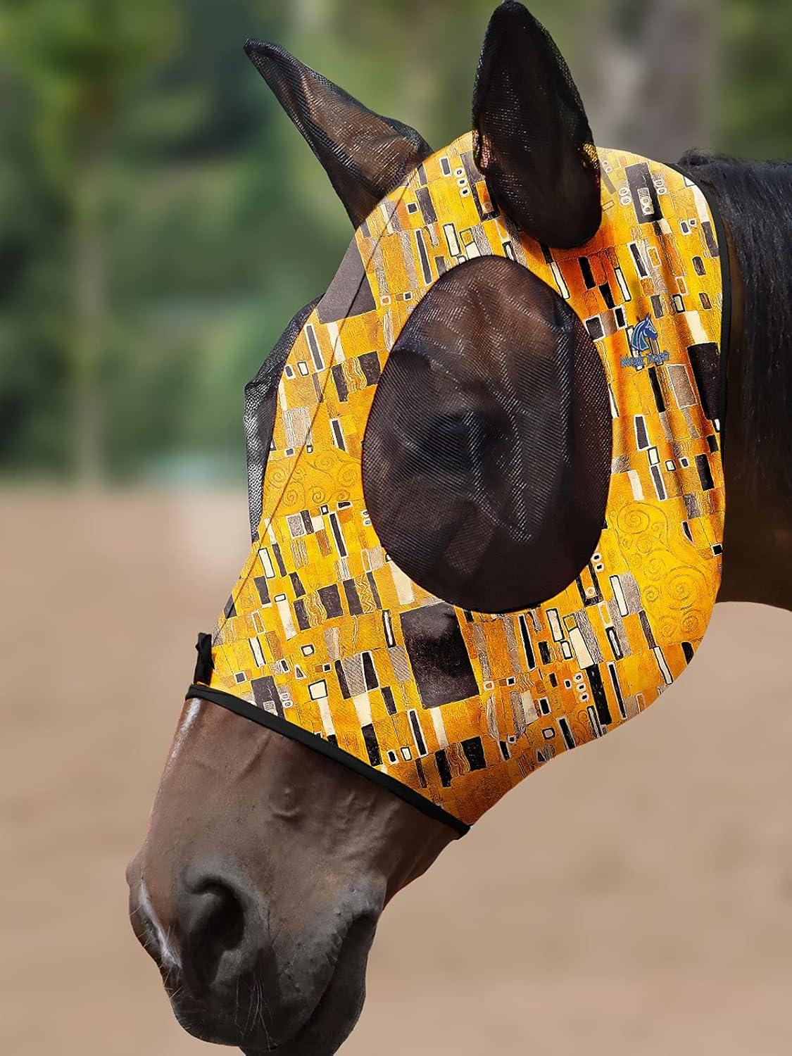 Mask Tech Horse Fly Mask Elasticity Breathable Fabric with UV Protection Soft Mesh for Horse Entwined Straps L(Golden Matrix)