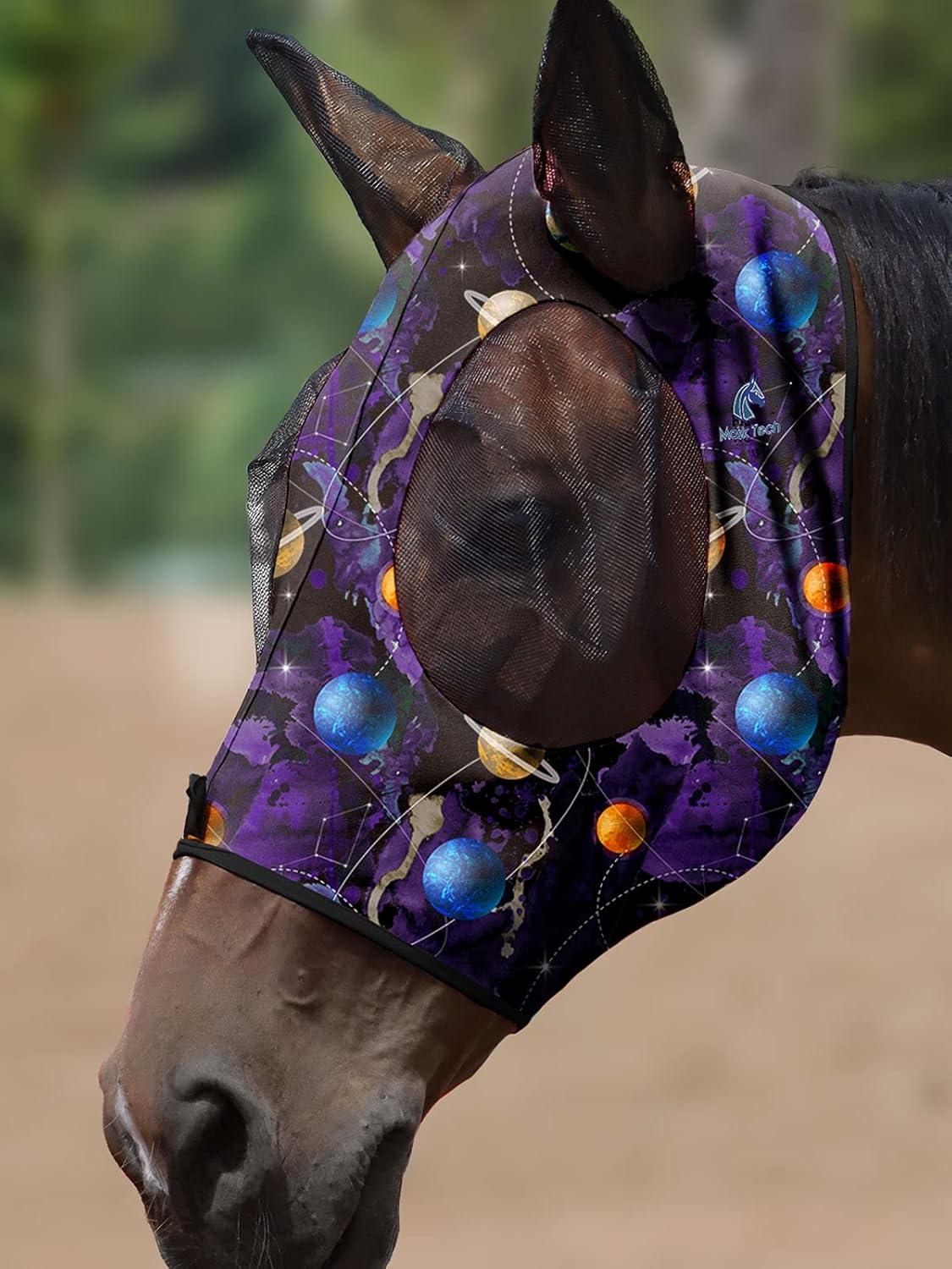 Mask Tech Horse Fly Mask Elasticity Breathable Fabric with UV Protection Soft Mesh for Horse Everlasting Cosmos L(Everlasting Cosmos)