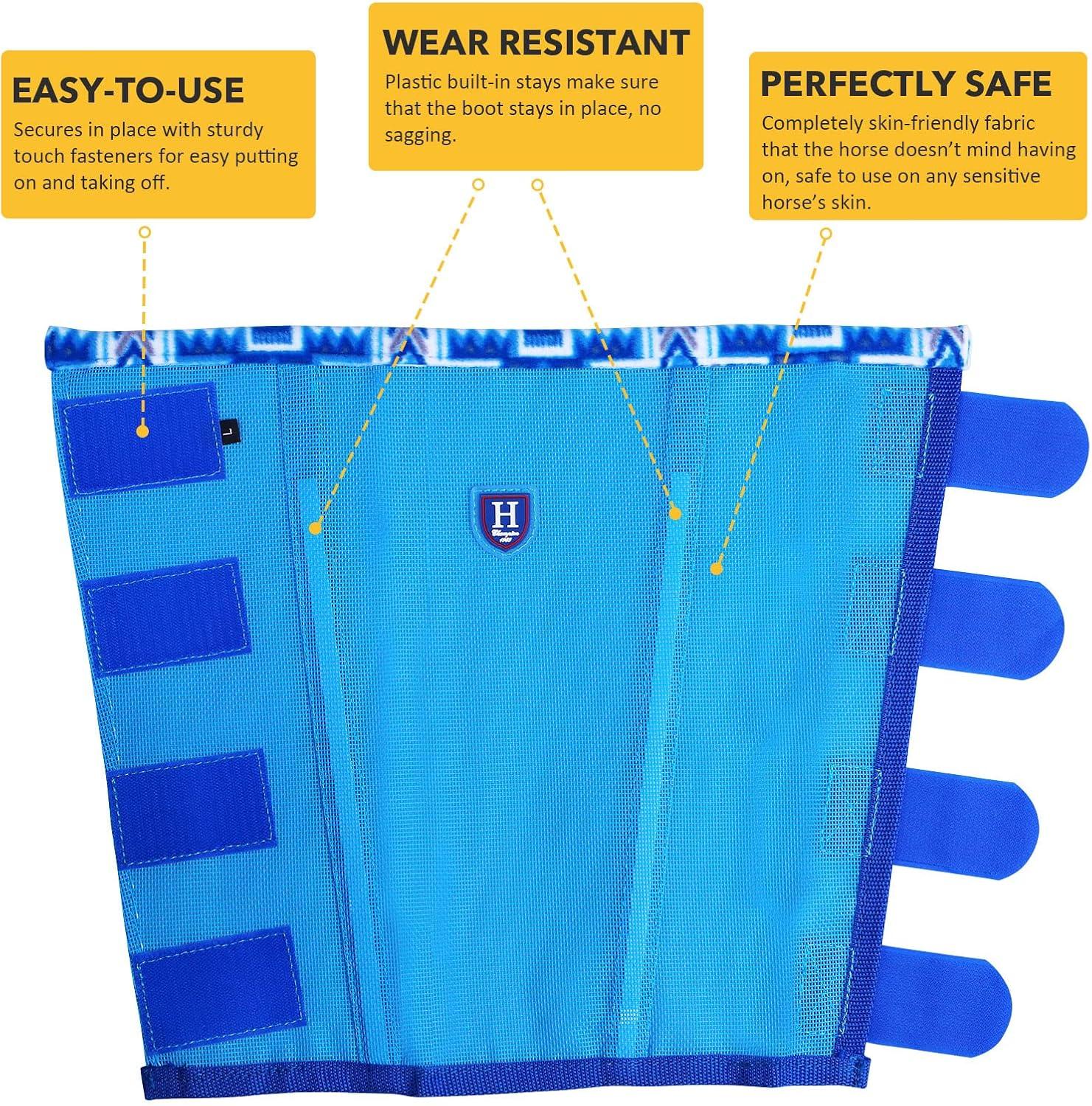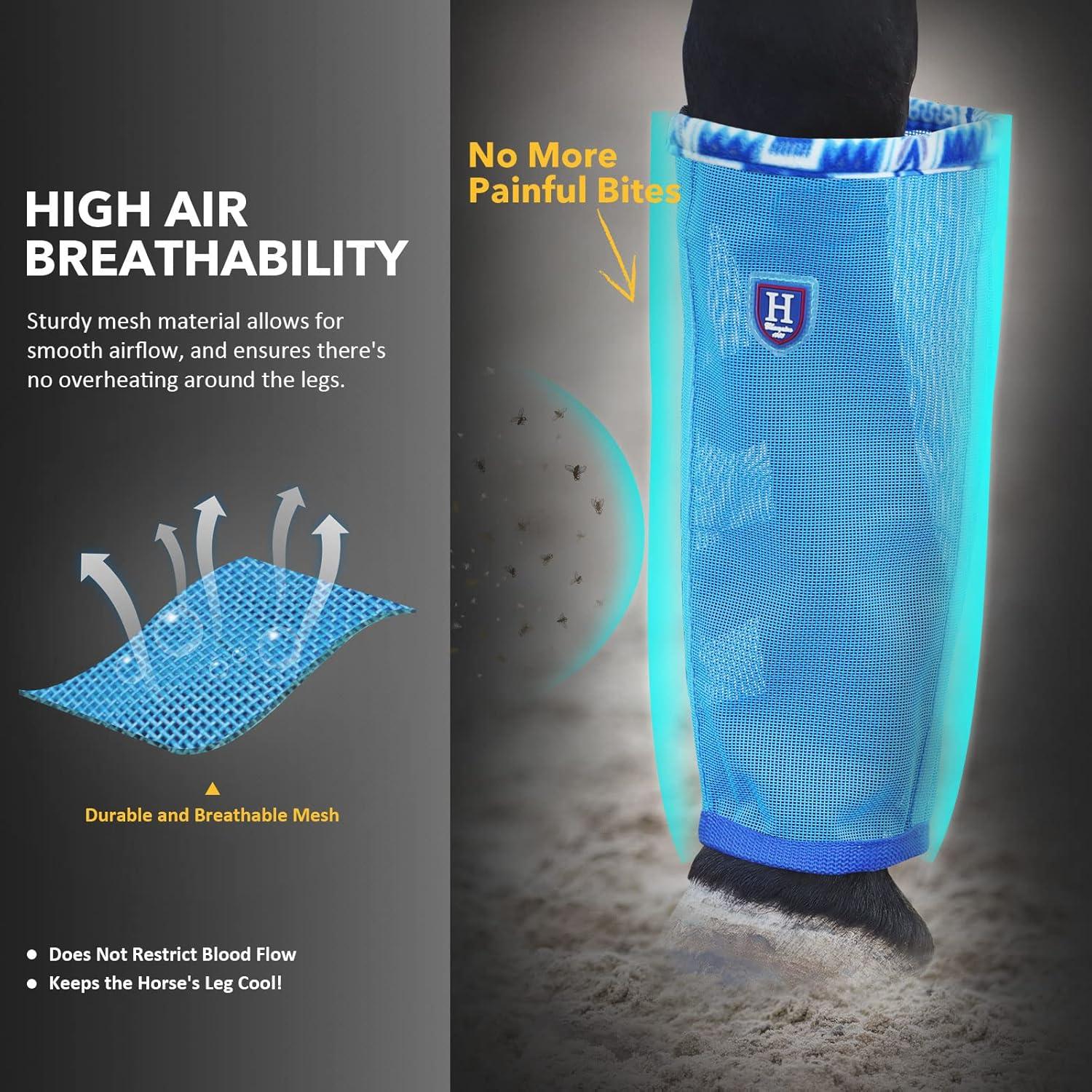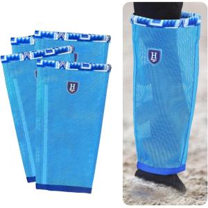 • Fine Mesh Fly Boots Loose Fitting & Non-Slip Horse Fly Leggings Fleece Air Flow (Set of 4)(Cool Blue)
