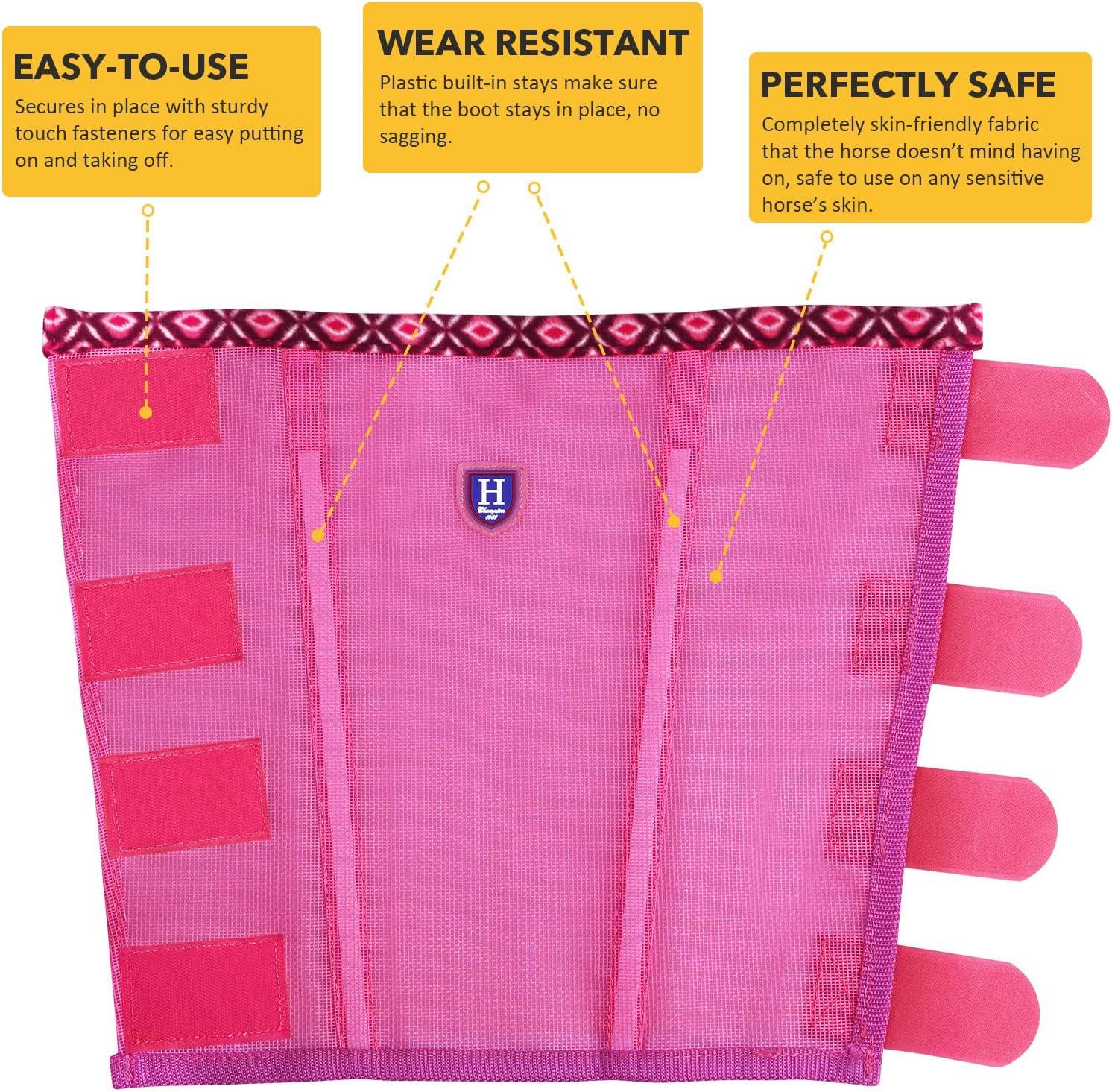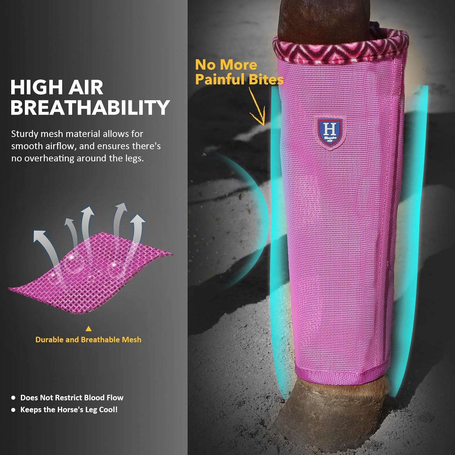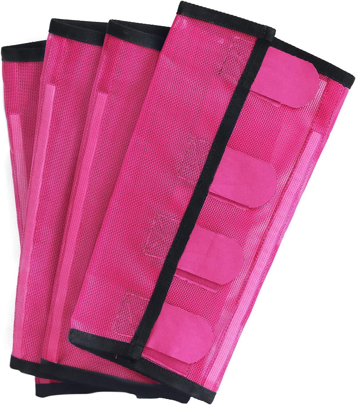 • Fine Mesh Fly Boots Loose Fitting & Non-Slip Horse Fly Leggings Fleece Air Flow (Set of 4)(Hot Fuchsia)
