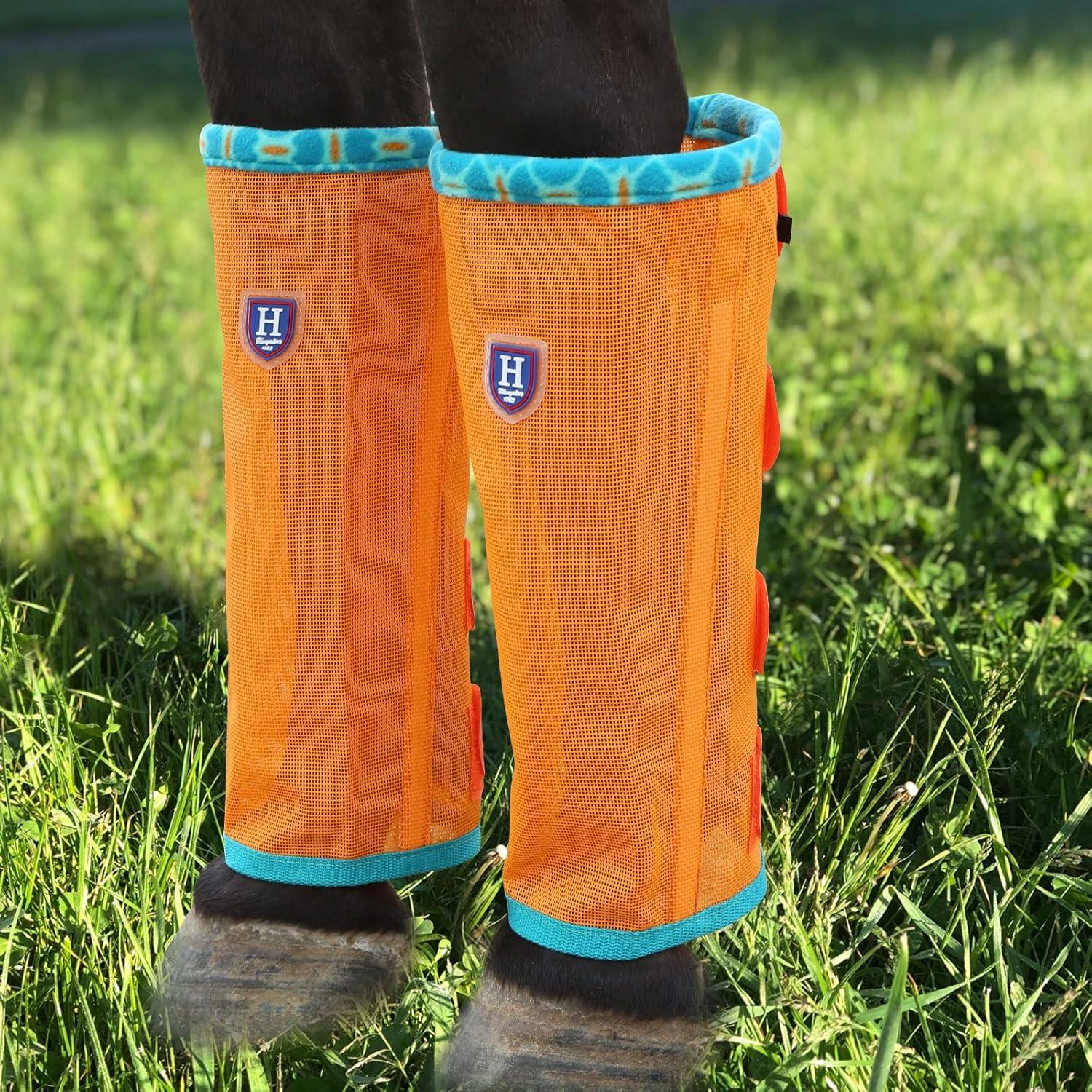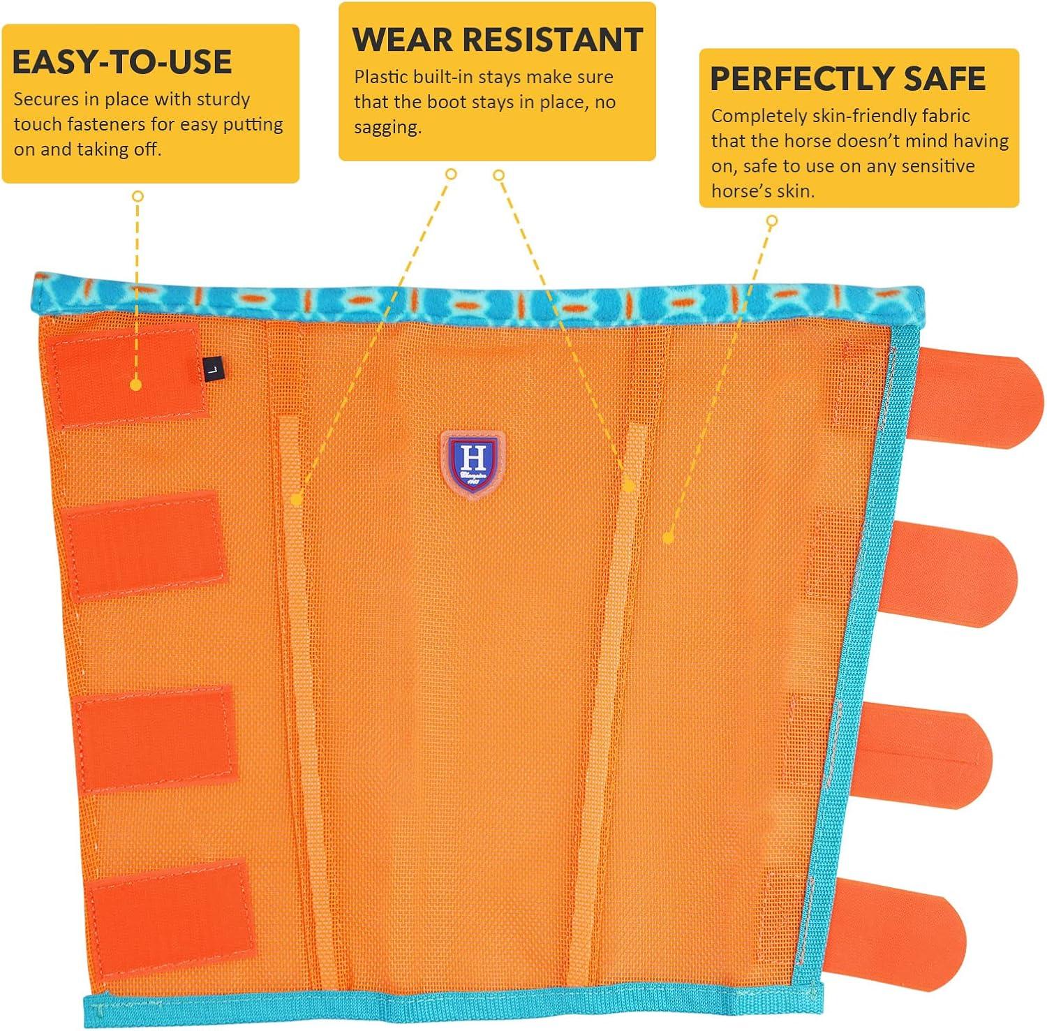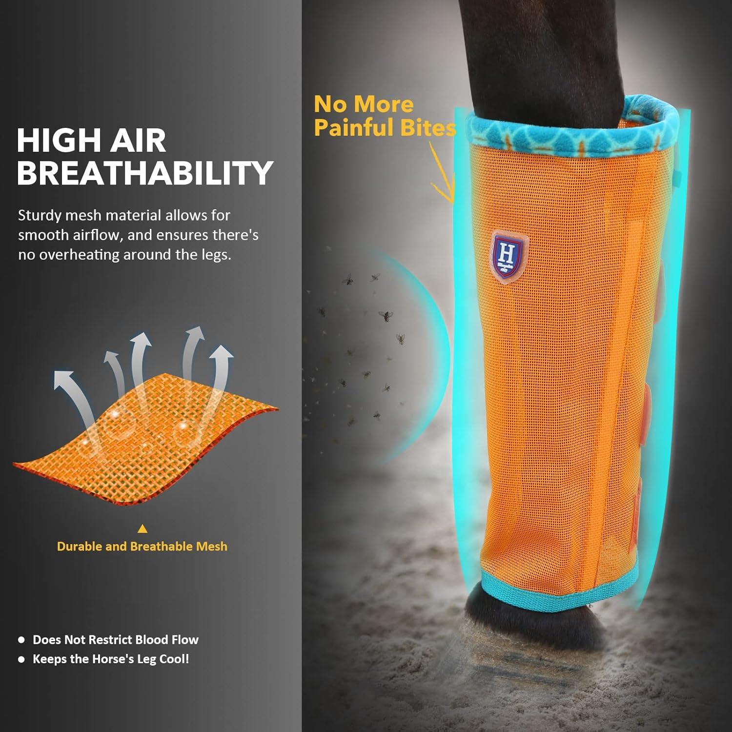 • Fine Mesh Fly Boots Loose Fitting & Non-Slip Horse Fly Leggings Fleece Air Flow (Set of 4)(Soft Orange)