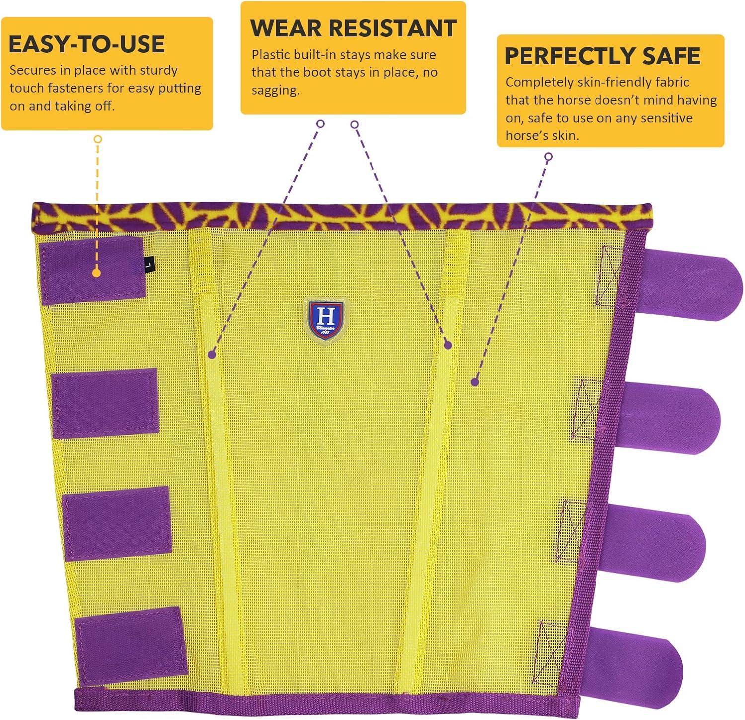 • Fine Mesh Fly Boots Loose Fitting & Non-Slip Horse Fly Leggings Fleece Air Flow (Set of 4)(Summer Lime)