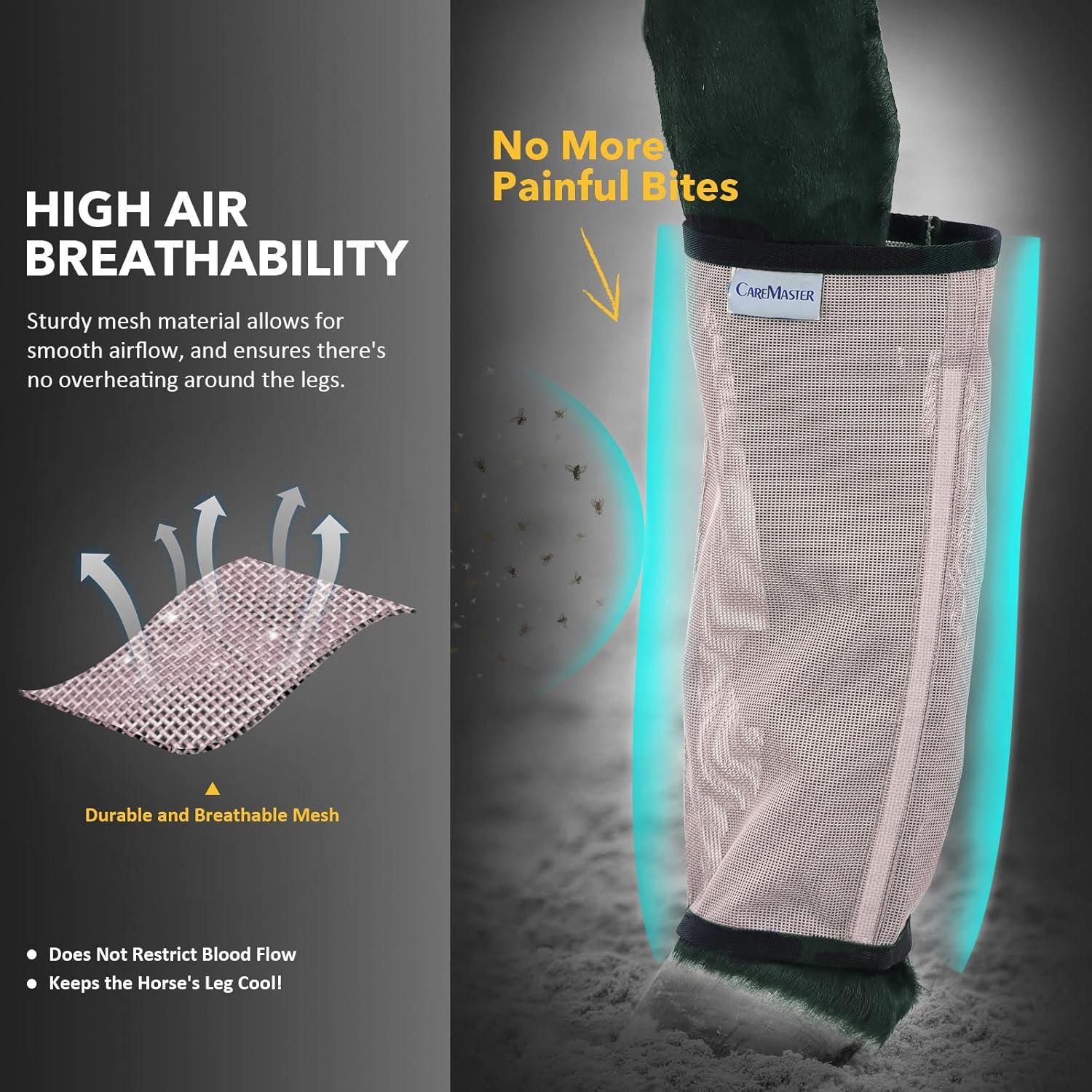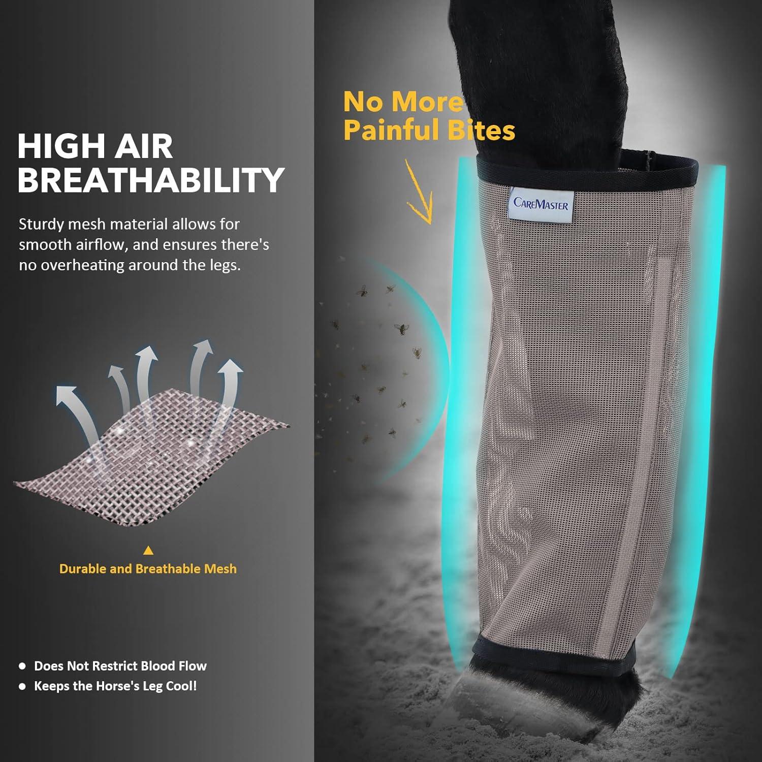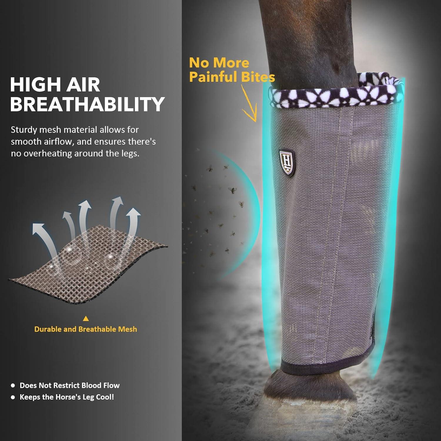 • Fine Mesh Fly Boots Loose Fitting & Non-Slip Horse Fly Leggings No More Horsefly Nuisance Greatly Reduce Stomping Breathable with Natural Air Flow (Set of 4)(Dark Grey)