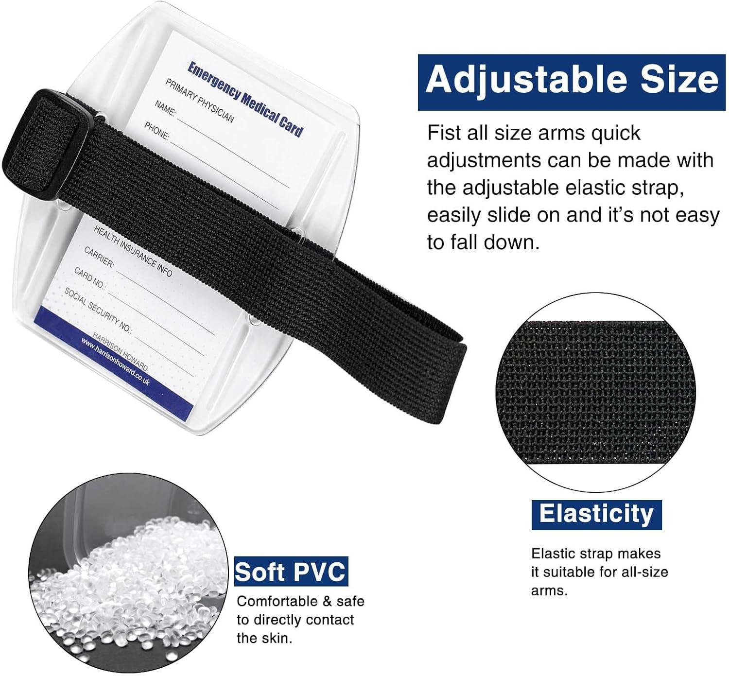 Harrison Howard 1PC Equestrian Medical Update Armband Card Holster Arm Badge Holder with Black Adjustable Strap Black(1)