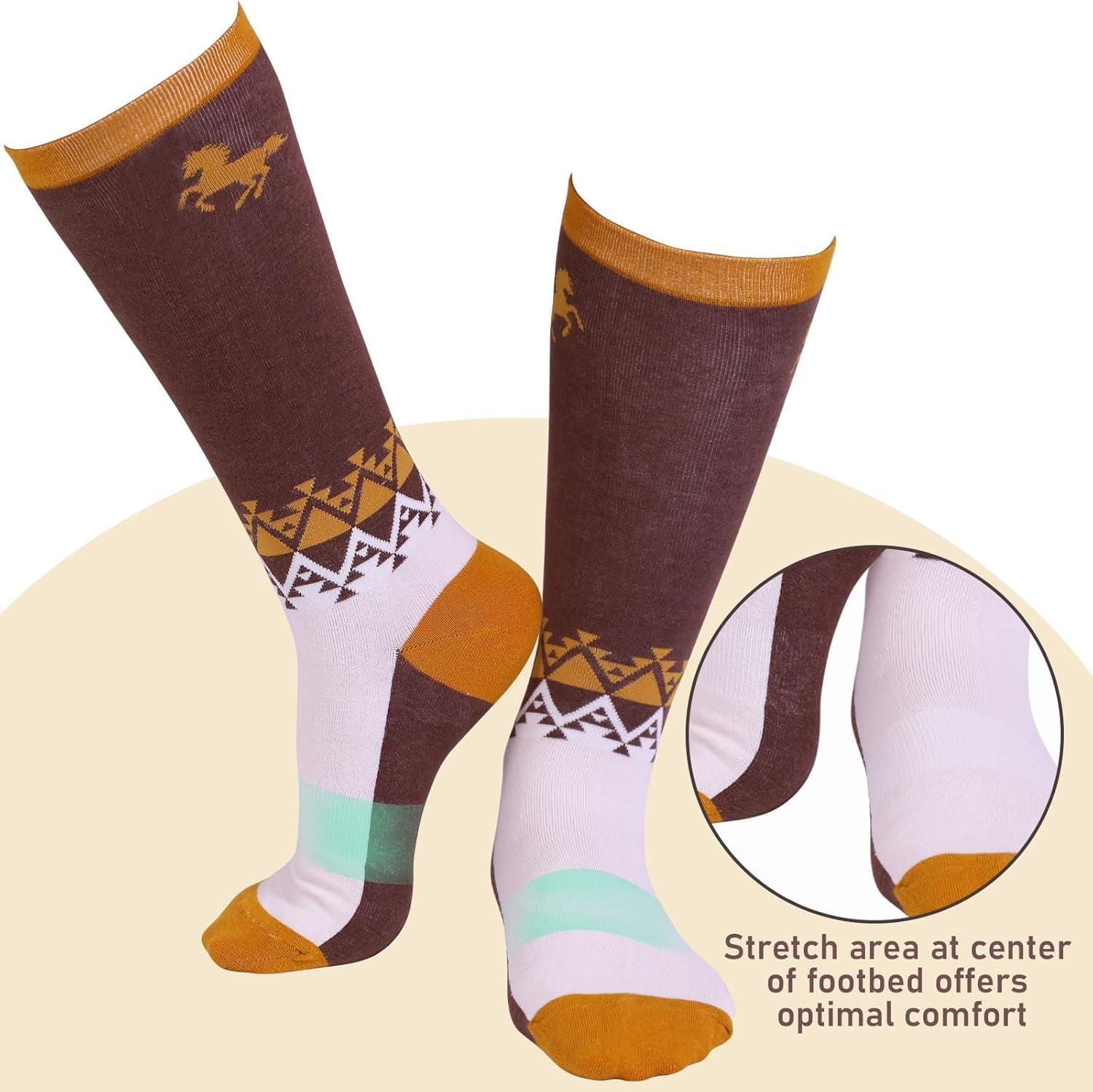 Harrison Howard 2 Pairs Premium Quality Equestrian Riding Socks for Horse Riding &Tall Boot Knee High Socks for Women(Brown Galloping Pony)